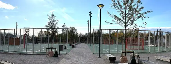 Cable Box vid Alléskolan i Malmö är en robust och funktionell konstruktion i rostfritt stål, utvecklad för lång livslängd och minimal underhållsinsats. Arenan är utrustad