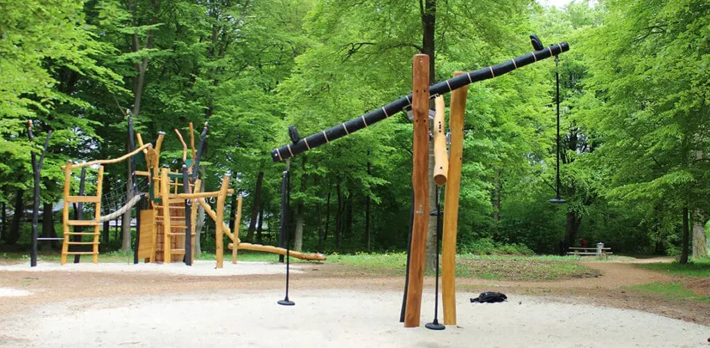 När vi bygger naturlekplatser använder vi ofta utrustning gjord av robiniaträ. Robinia har naturlig beständighet utomhus och behöver ingen tryckimpregnering, vilket gör det slitstarkt och mycket hållbart. Dessutom har materialet en vacker färg och form som gör det naturligt att använda på de flesta naturlekplatser.