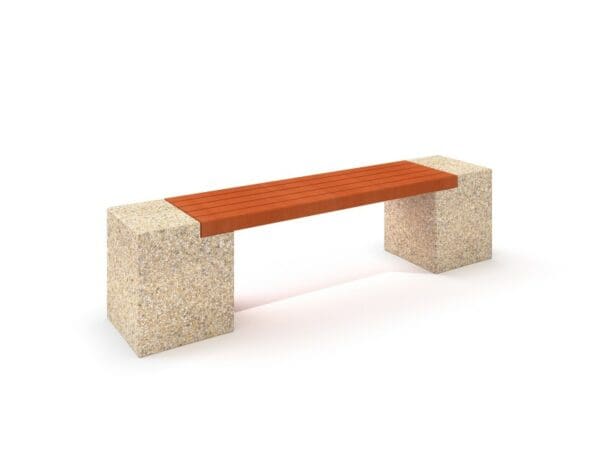 Betongbänk finns i 15 färger utan ryggstöd. Sitsen är gjord av trä. Bänken är ett bra val för bekväma urbana möbler för parken. Konstruktionen av denna bänk ger intrycket av lätta och estetiska möbler.