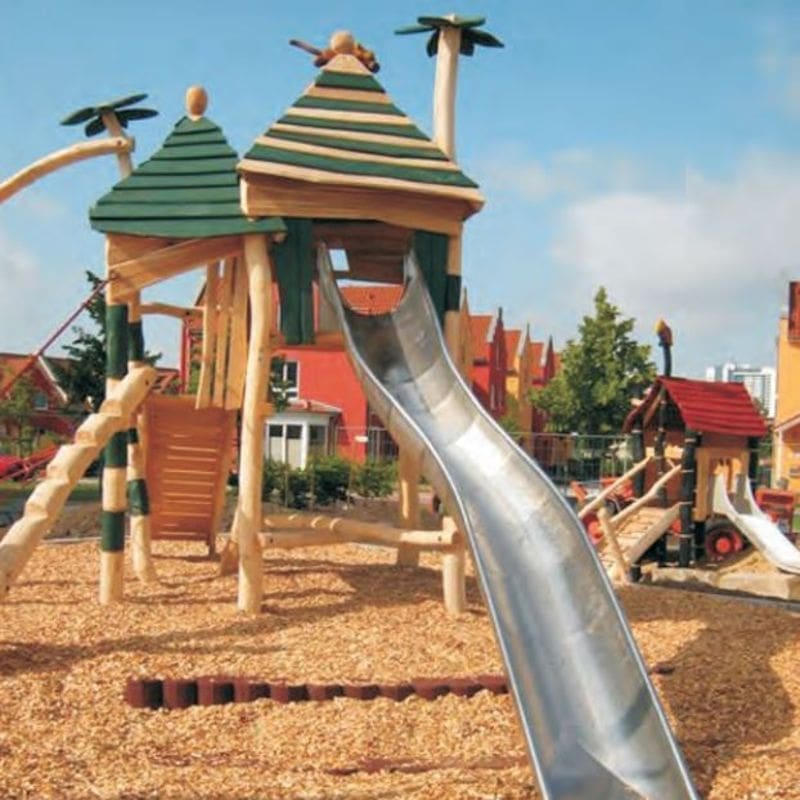 Lektorn med 2 plattformar, rutschkana med hopp, klätterramp med grepp och rep, klätternät, stolpe med trappsteg och rep, balansbommar, balansrep och rep-armgång