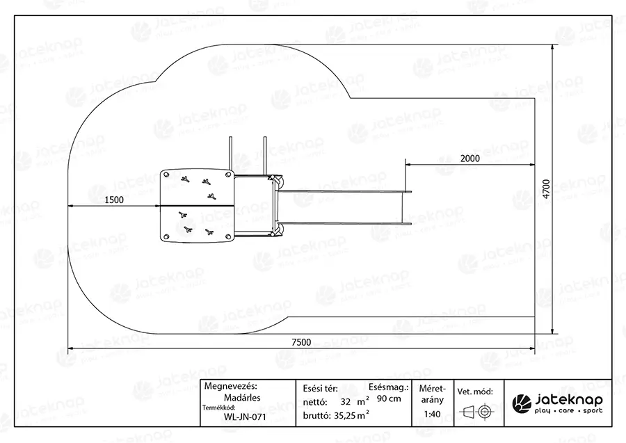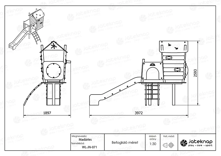 Som medlem af vores nye, innovative produktlinje er vores mål at fremme den akvatiske verden og vandsport, hvilket også muliggør skabelsen af temalegepladser. Madárles er et produkt designet til mindre børn, som både fungerer som en krog for dem, der vil gemme sig eller til at spionere gennem plexiglasset, og det kan være et aktivt legetøj for børn, der kan lide at klatre og glide.