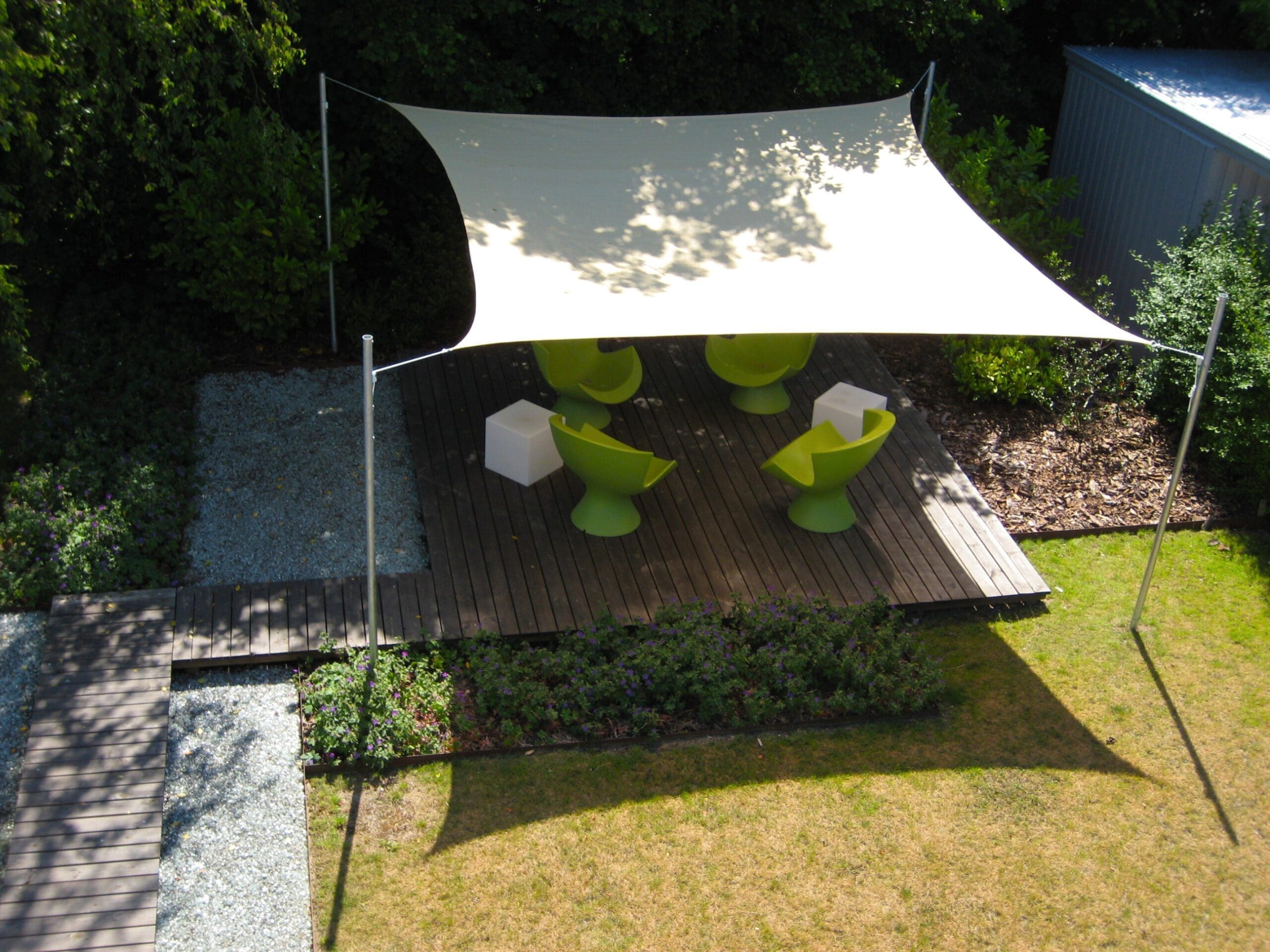 Kvadratiskt solsegel i HDPE med en sidolängd på 4,2×4,2 meter.