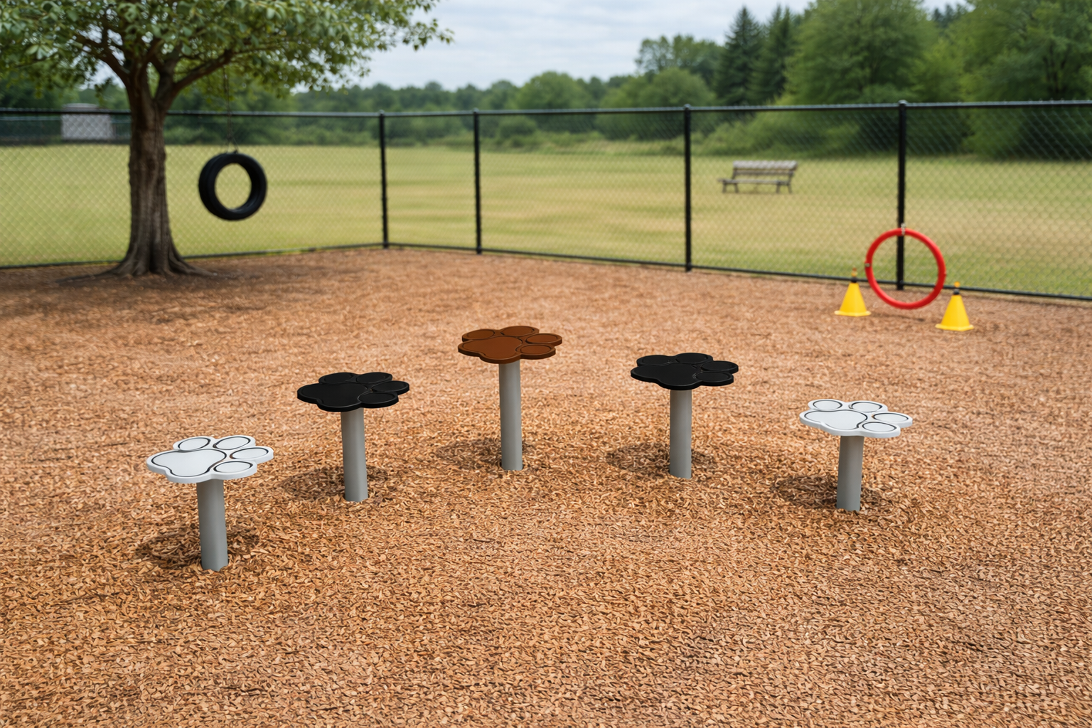 Dog Agility 12 är balansstolpar med tassformade plattformar för hundar, utformade för aktiv, säker och glädjefylld utomhuslek. Den solida, väderbeständiga strukturen uppmuntrar hundar att röra sig, utvecklar deras smidighet, koordination och naturliga utforskningsinstinkter. Den är perfekt för alla hundlekplatser, ger oändligt med skoj för hundar och ger ägarna försäkran om att de väljer en hållbar, estetisk och helt säker produkt.