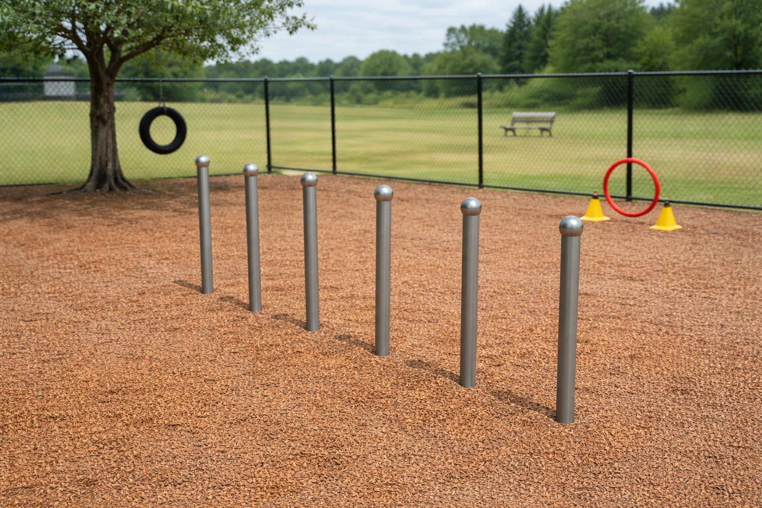 Dog Agility 14 är en uppsättning slalomstavar för hundar, utformade för aktiv, säker och glädjefylld utomhuslek. Den solida, väderbeständiga strukturen uppmuntrar hundar att röra sig, utvecklar deras smidighet, koordination och naturliga utforskningsinstinkter. Den är perfekt för alla hundlekplatser, ger oändligt med skoj för hundar och ger ägarna försäkran om att de väljer en hållbar, estetisk och helt säker produkt.