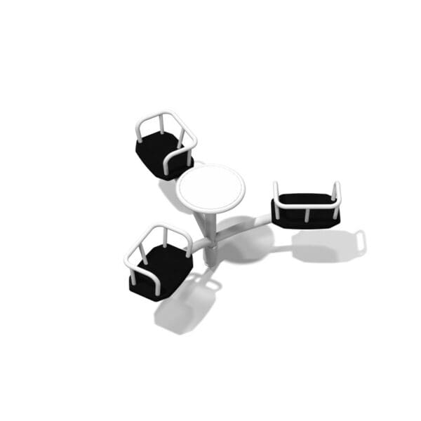 Trearmad karusell med tre halksäkra sitsar med ryggstöd. För barn i åldrarna 3-16 år.
