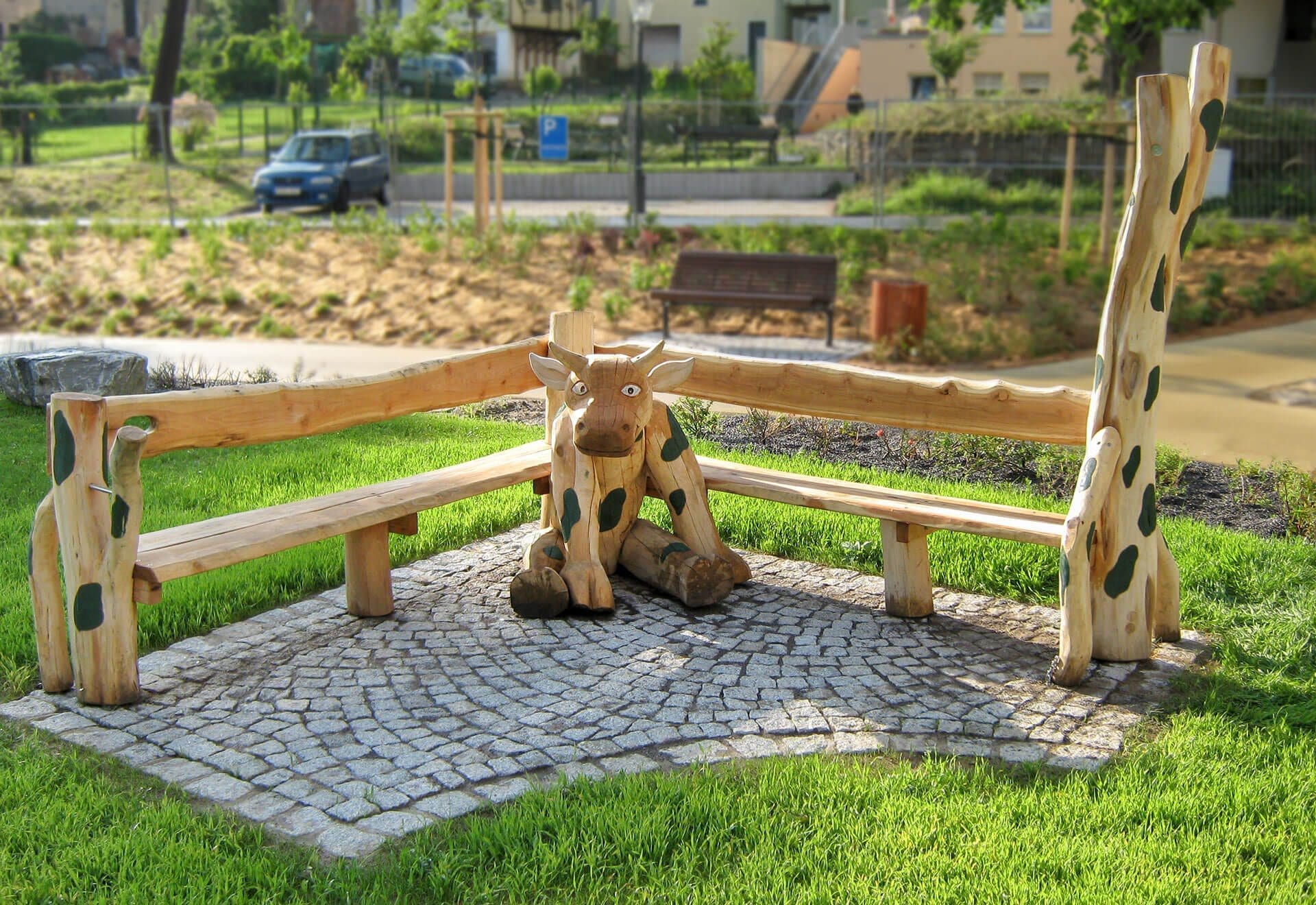 Hörnbänk med kofigur