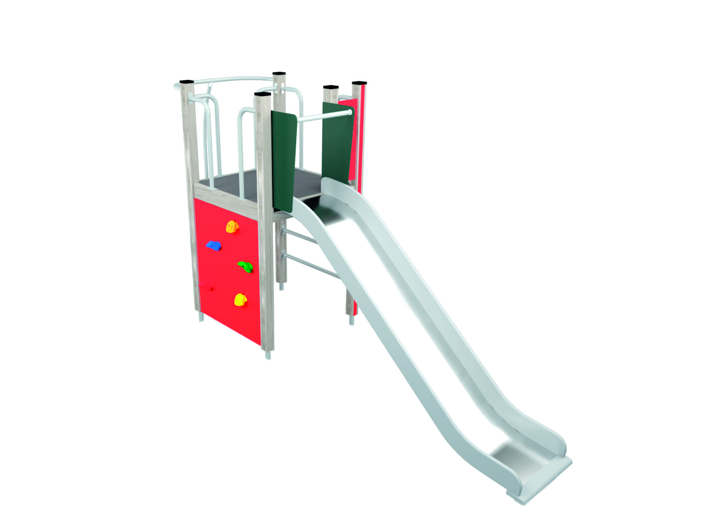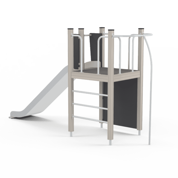 Rund sandlåda med praktiska toppar för att göra sandkakor och sikt för att sila sand. Enheten är även anpassad för att kunna användas av barn i rullstol. I botten av sandlådans skål finns attraktiva element som efterliknar fossiler (snäckor, ben). Konstruktionen är tillverkad av pulverlackerat galvaniserat stål som är motståndskraftigt mot väderförhållanden och intensiv användning. Sandlådans stomme och andra dekorativa element är tillverkade av HDPE.