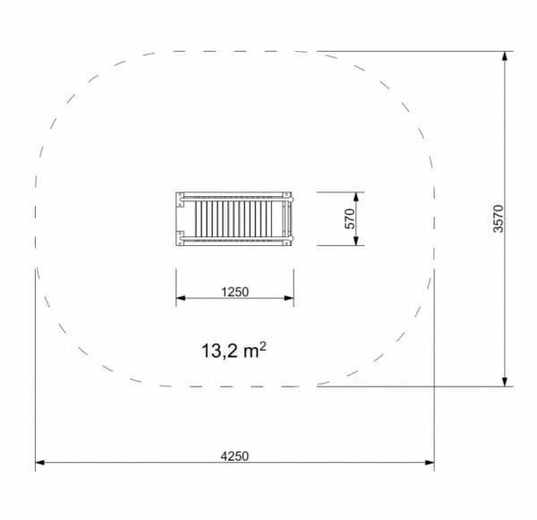 Dimensioner (L x B x H): 1,25 x 0,57 x 1,41 m