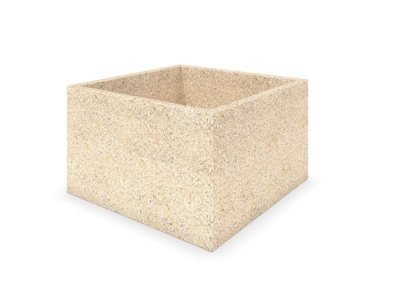 Urban systemprodukt. Fyrkantig kruka av dekorationsbetong med dräneringshål i botten.