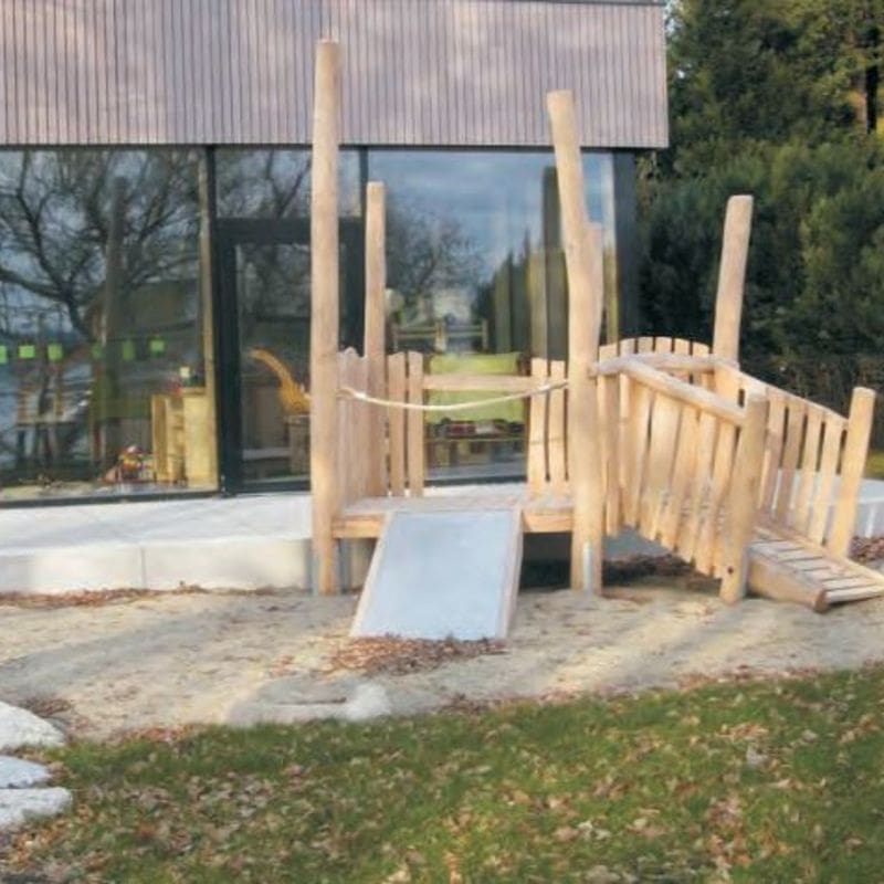 Podie med plattform, glidplatta och klätterramp med steg