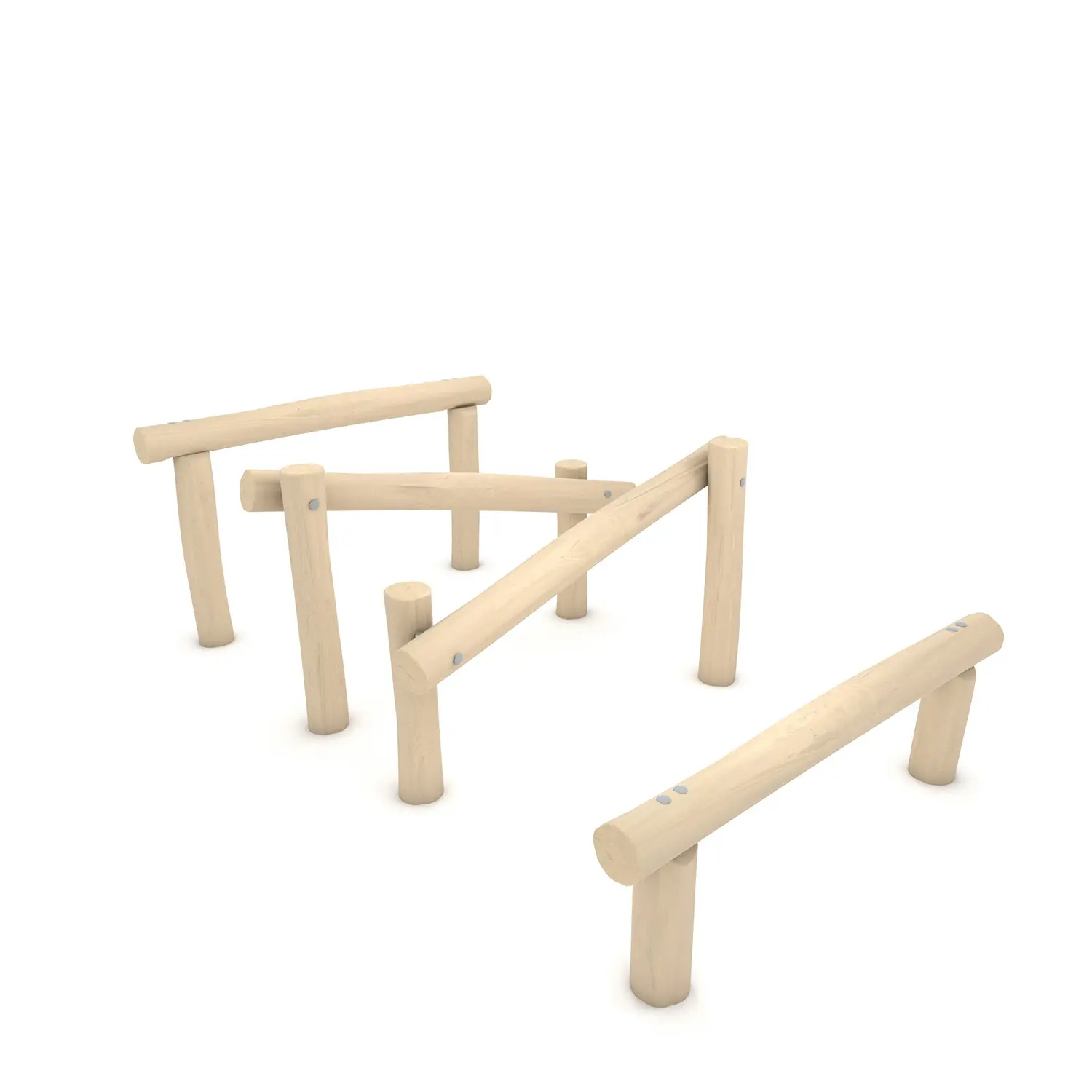 Konstruktion lavet af Robinia – meget slidstærkt akacietræ med en diameter på ~ 18 cm uden skarpe kanter, modstandsdygtig over for vejrforhold, Skruer dækket med plasthætter og/eller rustfri stålskruer,