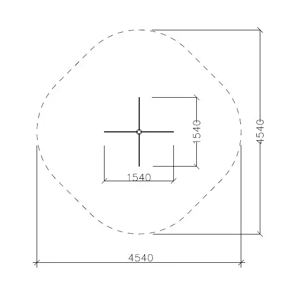 Sikkerhedsområde: 4,54 x 4,54 m