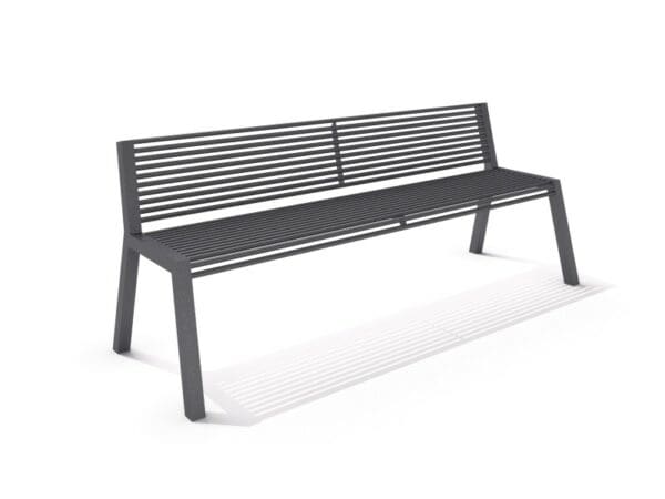 Stålbänk med ryggstöd av galvaniserat stål och pulverlackerad. Sits och ryggstöd är tillverkade av stål.