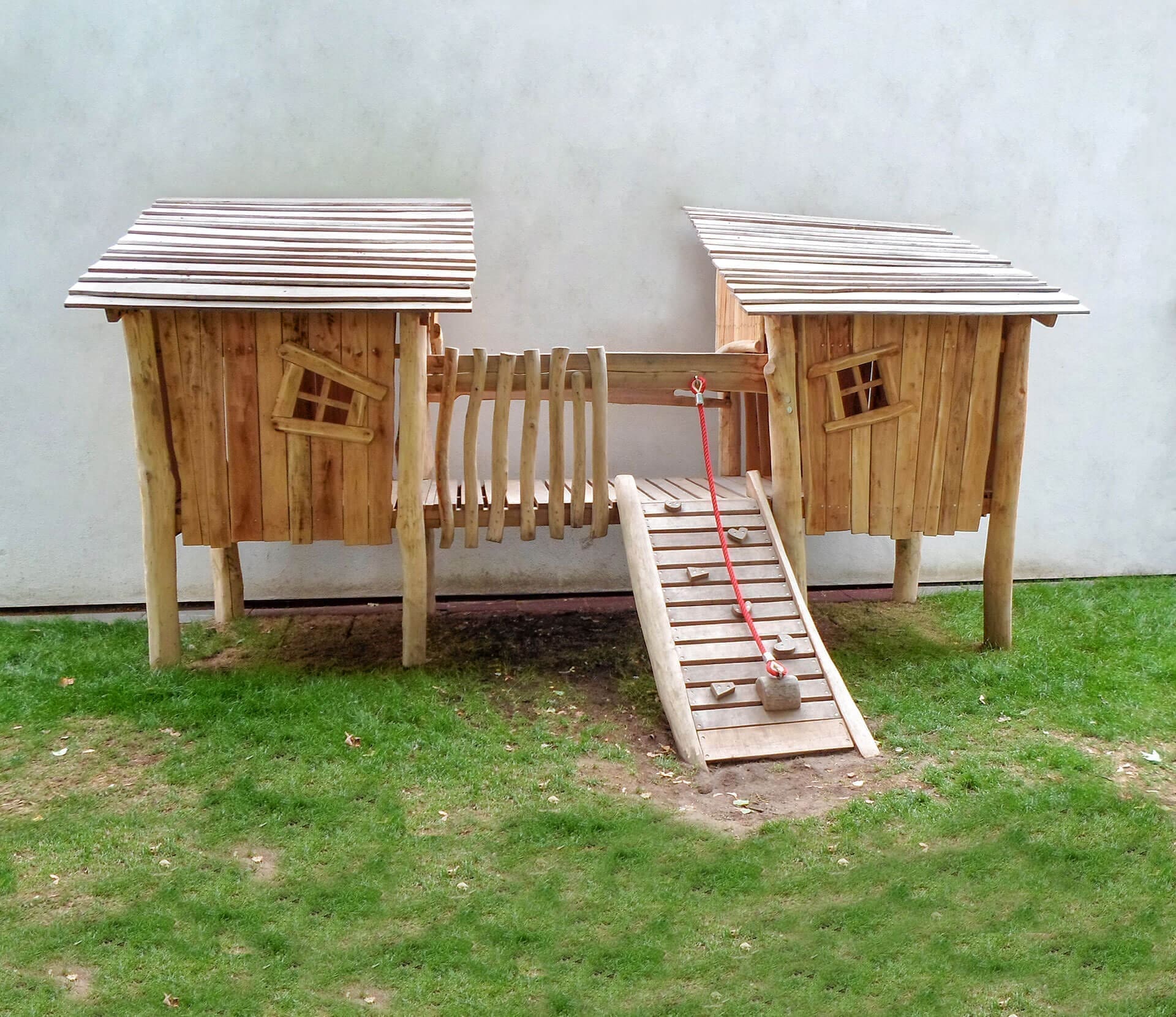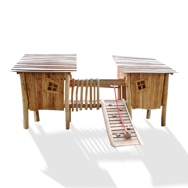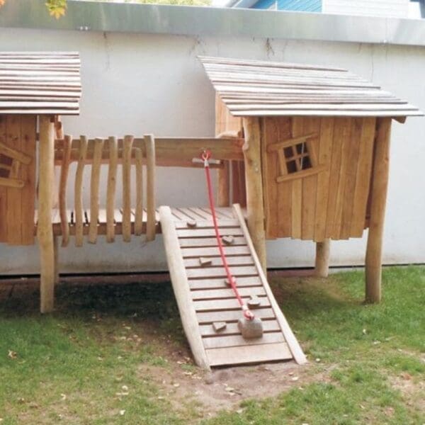 Lekhus på stolpar med ramp och rep