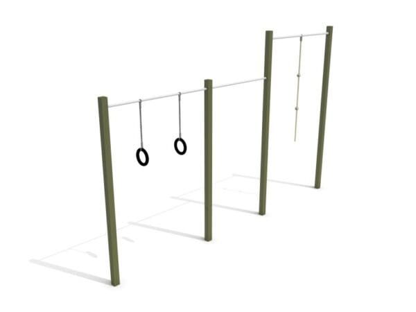 Träningsställning för tonåringar och vuxna bestående av: 1 monkey bar, bro och slalompassage. Strukturen är gjord av galvaniserat och pulverlackerat stål. Träning på redskapet stärker musklerna i bröst, rygg, armar, axlar och mage. Det påverkar också balanssinnet och förbättrar den motoriska koordinationen.