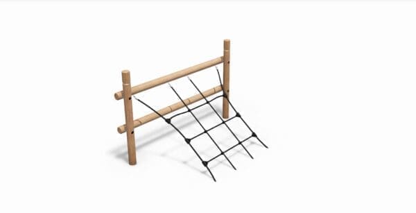 Uppgång med stoplar av robiniaträ och nät i taifunrep är lämpligt som en del av en motorikbana eller som uppgång till ett annat lekredskap.