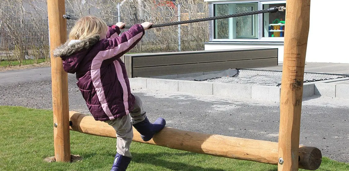 Naturlegepladsen består af en balancebane, hvor børnene kan udfordres motorisk, et klatretårn med rutsjebane, bord/bænkesæt, musikinstrumenter, legehuse og legeheste.