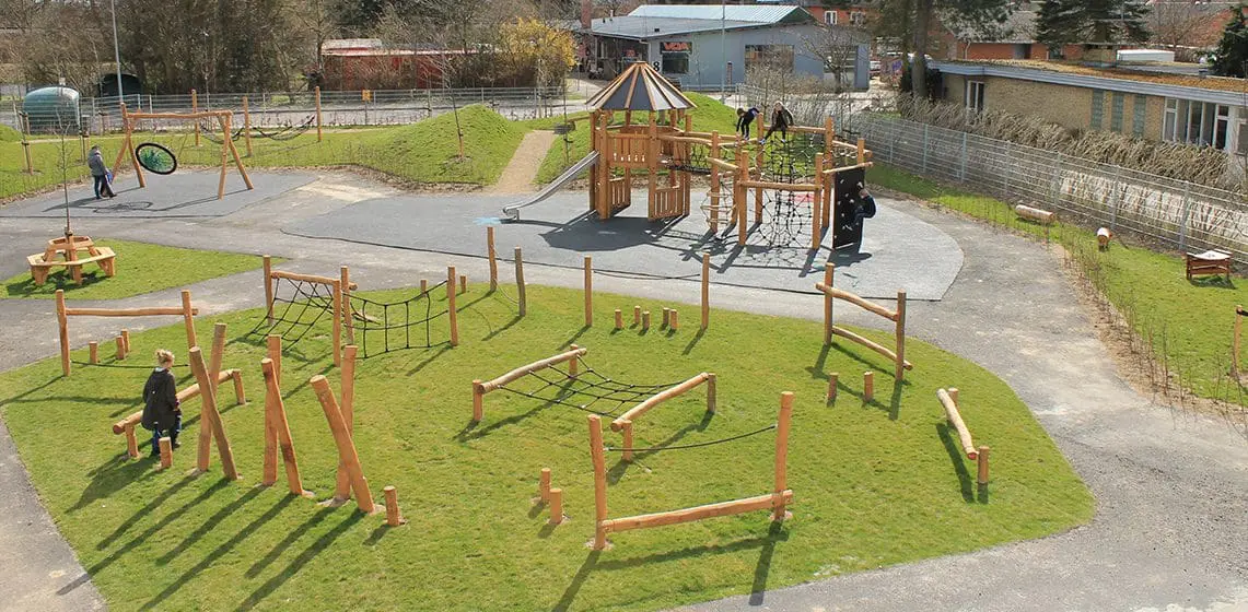 I Amalieparken var det vigtigt, at legepladsen ramte en bred målgruppe af børn fra 0-5 år. Den skulle tilgodese, at både store og små børn kunne lege imellem hinanden og samtidig blive udfordret motorisk på forskellige niveauer fordelt ud over hele området.