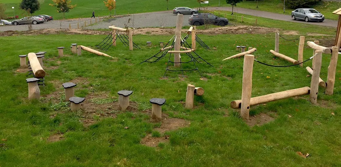 Det flotte madpakkehus og balancebanen bruges allerede flittigt ag skolen, børnehaven og børn som er med deres forældre på golfbanen.