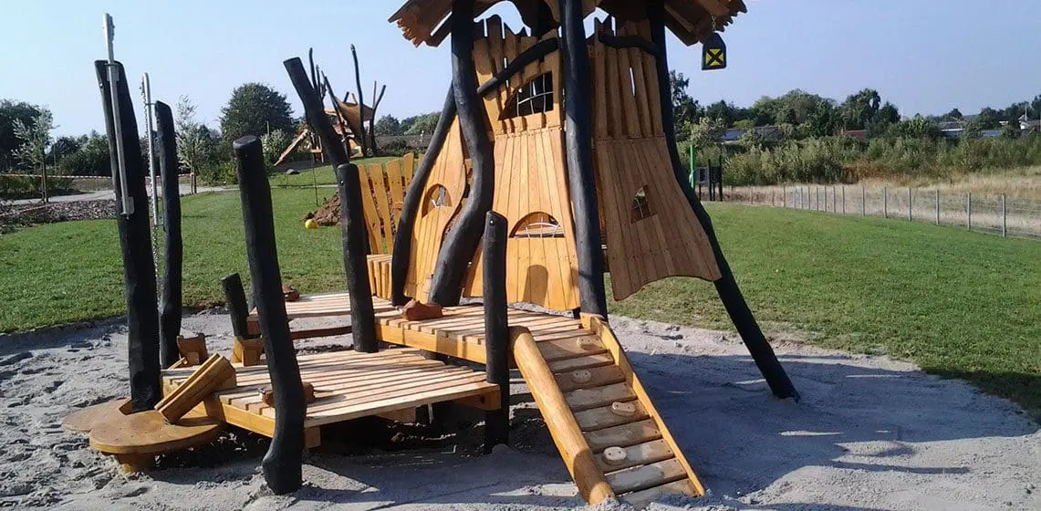 Institutionen ønskede en tematiseret legeplads, der skulle appellere til børnenes fantasi. Med temalegepladsen fra Spielart, der med sine skæve former og sjove figurer skaber en eventyrfølelse, skabte vi små miljøer, hvor børnene kan fordybe sig. Legepladsen har givet børnene mulighed for at bevæge sig rundt på det store areal, hvor de møder forskellige motoriske udfordringer og sanseindtryk.