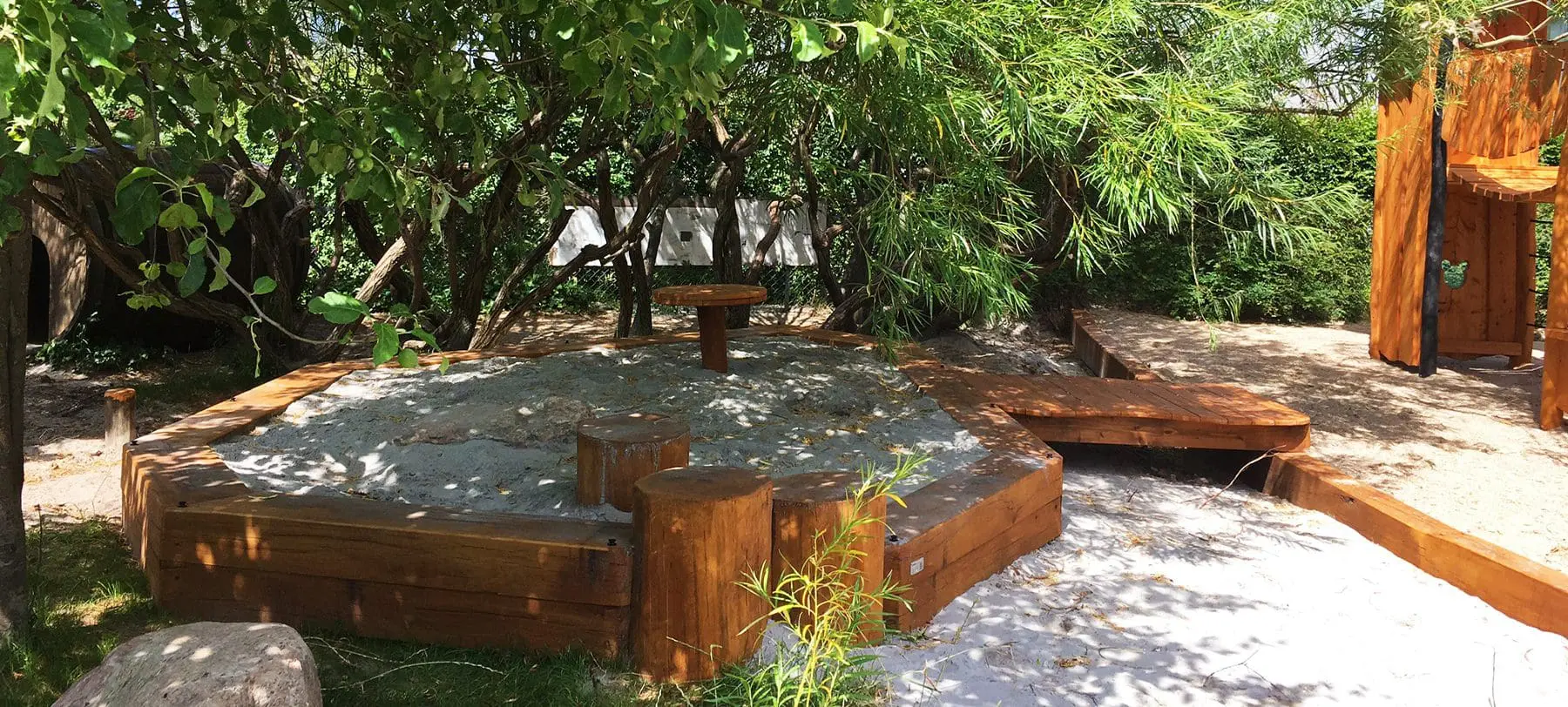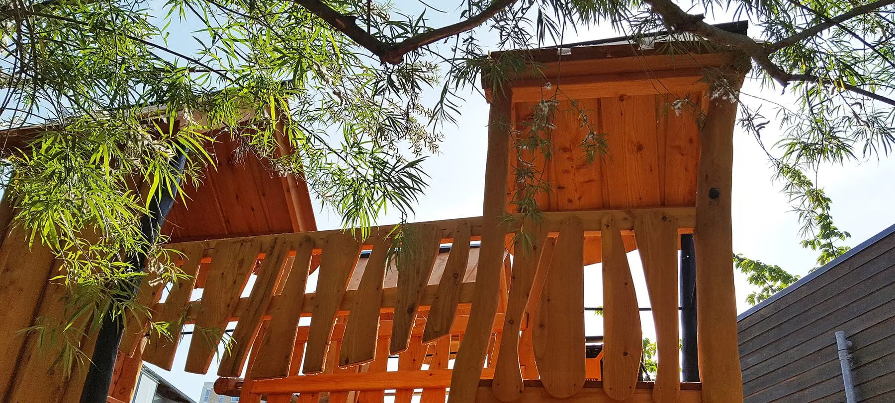 Under grønne trækroner og mellem frodige buske finder man på Amager det lille åndehul ’Hundredemeterskoven’. Her ønskede man sig en ny legeplads, der kunne komplimentere områdets mange planter, i stedet for at gemme dem væk. Derfor renoverede CADO området og skabte specialdesignede løsninger, der passede smukt ind i de grønne omgivelser og mange små rum.