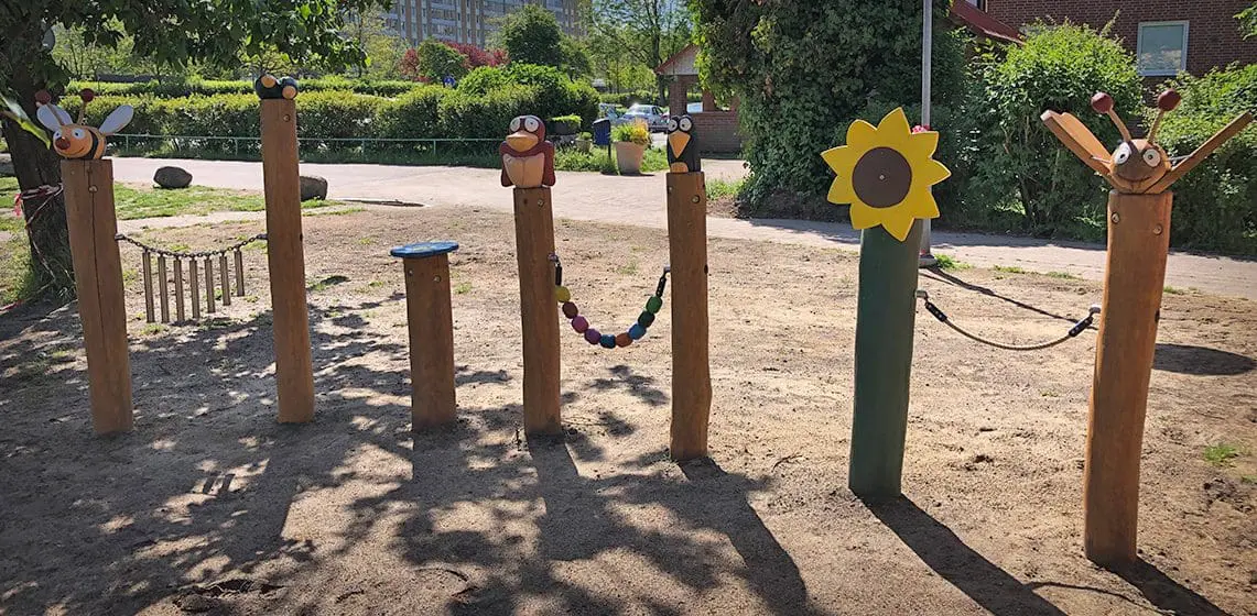 Til projektet udvalgte vi flere elementer, som gør legepladsen helt unik og tilpasset Jacob Persgården’s ønsker. Der blev plads til flere forskellige legeredskaber, heriblandt en svævebane, gynger, karusseller og sandkasser. Legepladsens helt centrale element ”Det eventyrlige slot” understøtter børnenes temaleg og vækker deres nysgerrighed og fantasi.