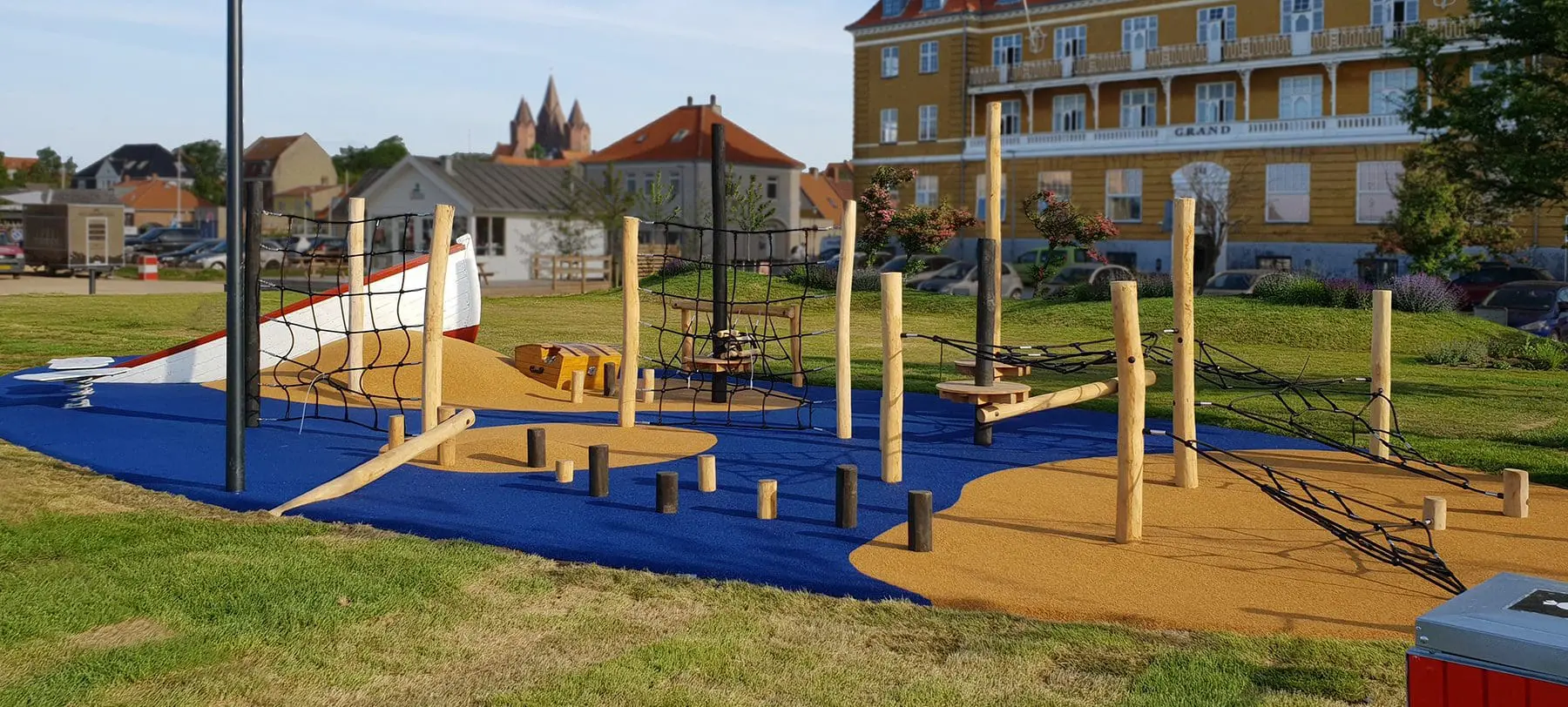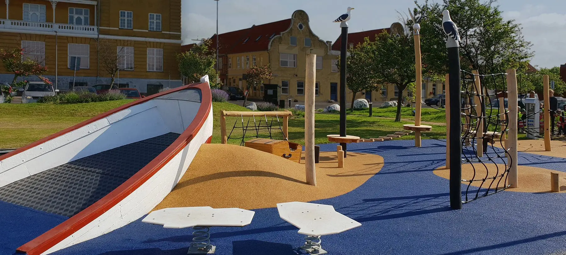Den maritime legeplads vækker børnenes fantasi, styrker og udvikler deres motoriske evner, og som prikken over i’et tager den stort set ikke noget af den flotte udsigt. Se de mange glade børn til indgivelse af legepladsen her.