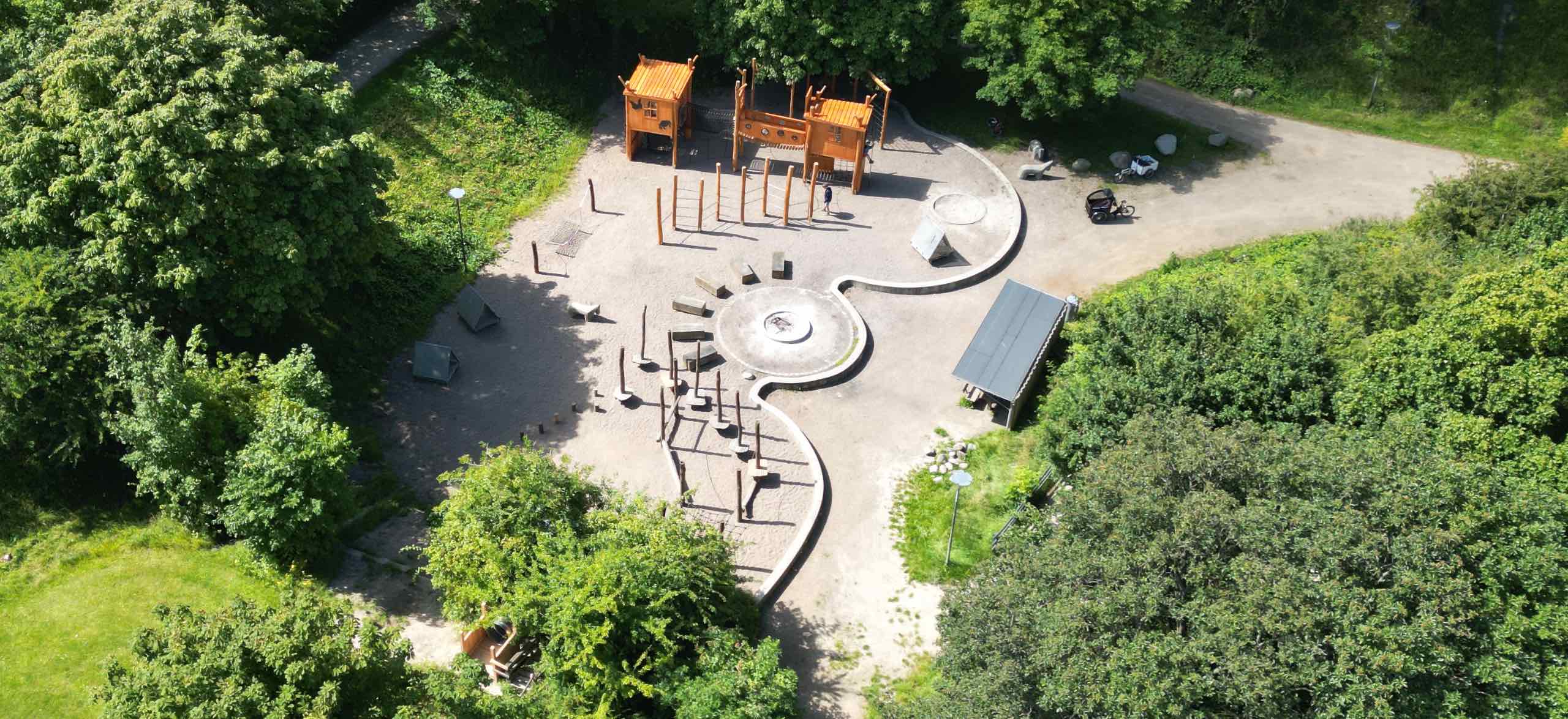 Her er også borde og bænke, og et lille læskur, så der er også gode muligheder for ophold. Stedet er et perfekt til en udflugt for hele familien, for ungerne kan frit gemme sig og lege i timevis – her er mange legemuligheder for små- og halvstore børn.