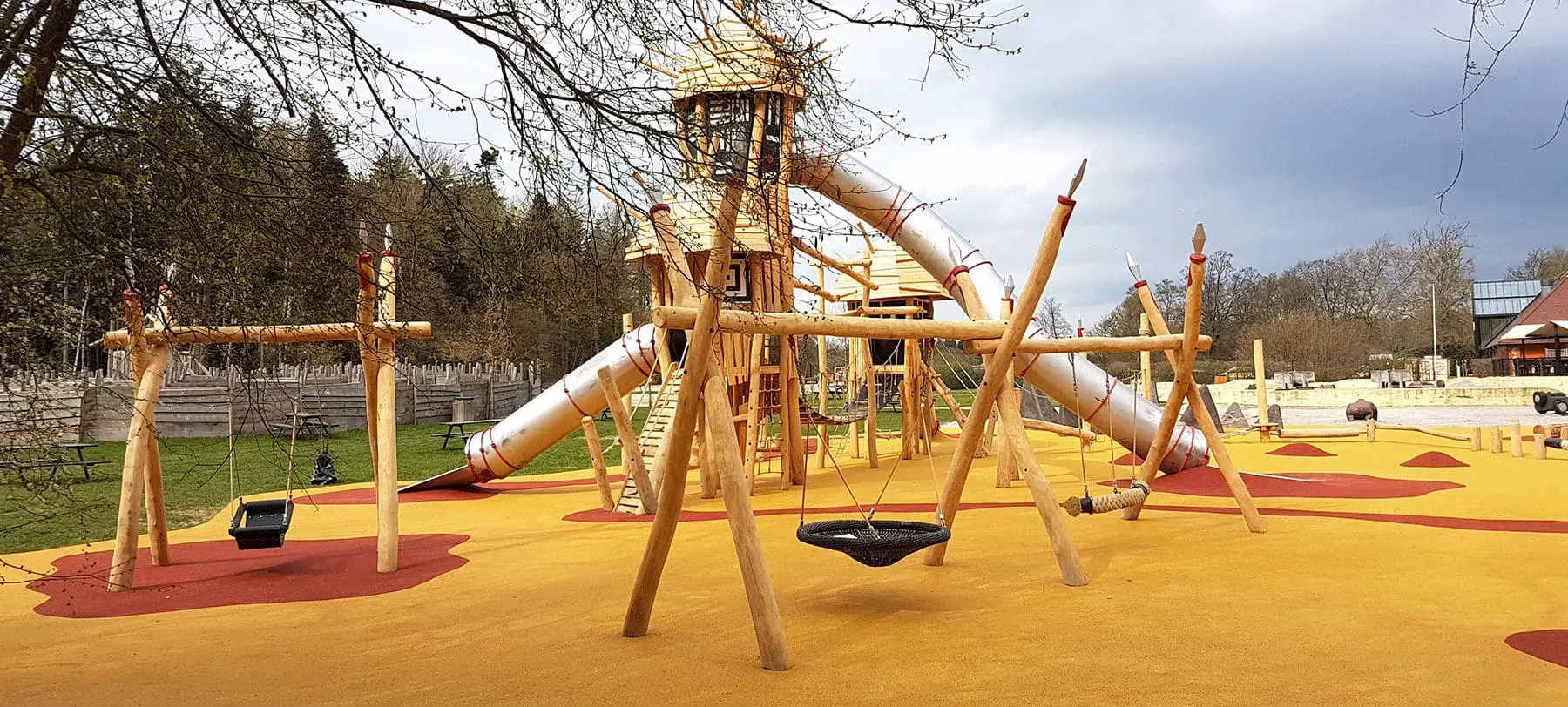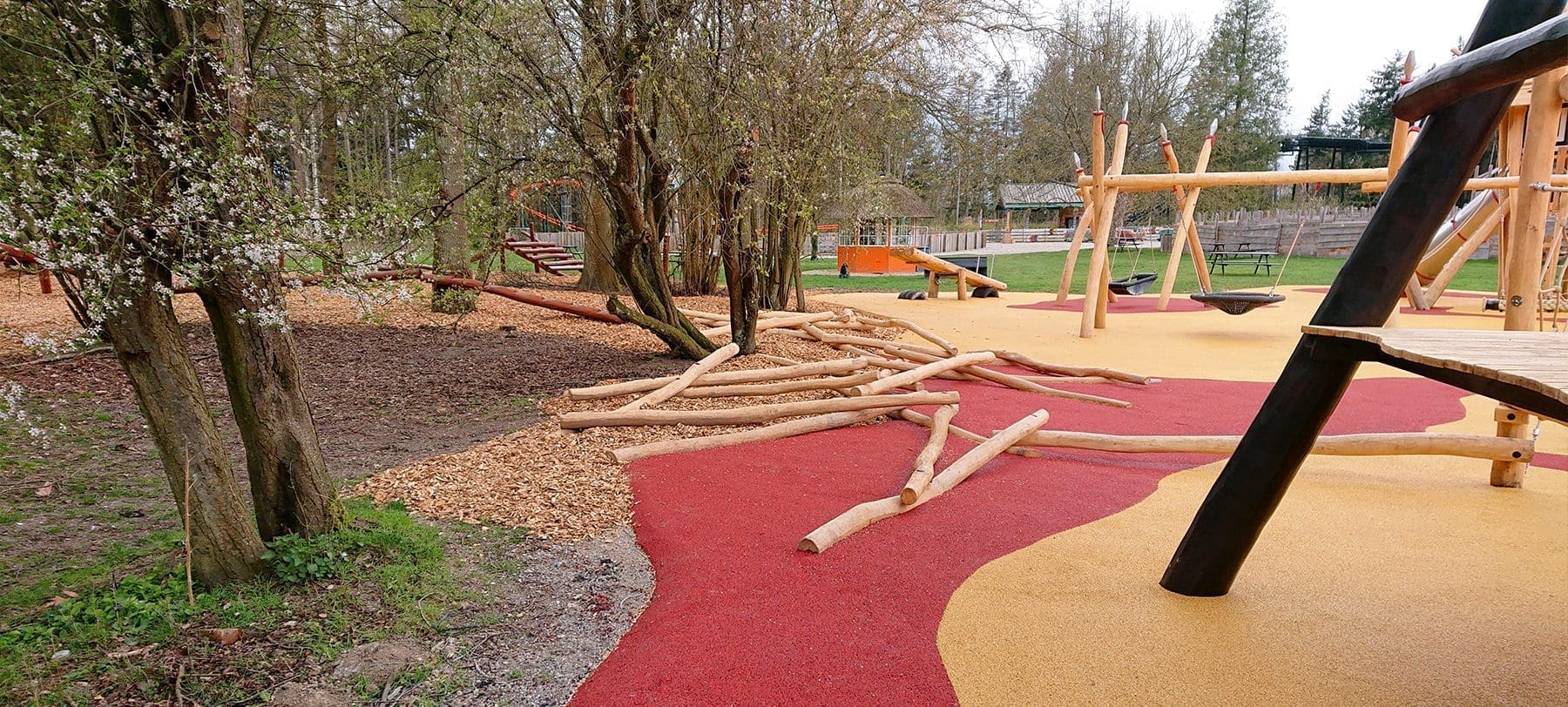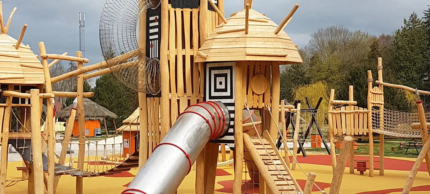 På en blød, varm, rød og gul slette skyder en hel, lille verden op midt i Knuthenborg Safariparks afrikansk inspireret forlystelsesparadis Limpopoland. Områdets unikke temadesign stod derfor i front, da parken besluttede at renovere deres legeplads. Med det in mente tog vi fat i vores fast samarbejdspartner Spielart for at skabe en eksotisk, fantasifuld og alsidig legeplads.