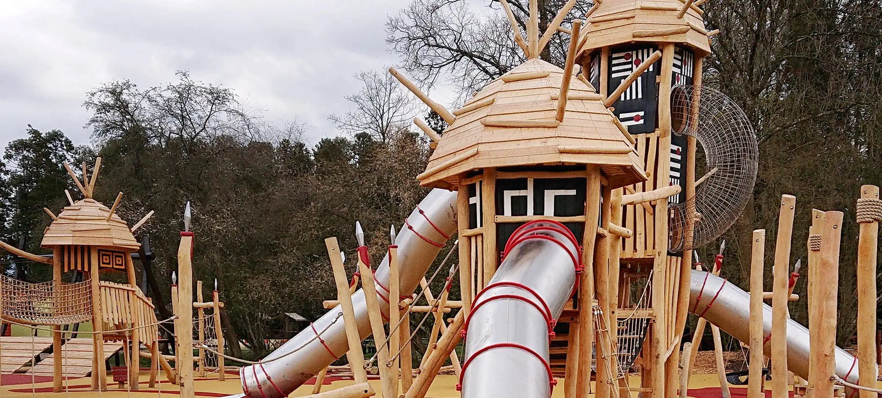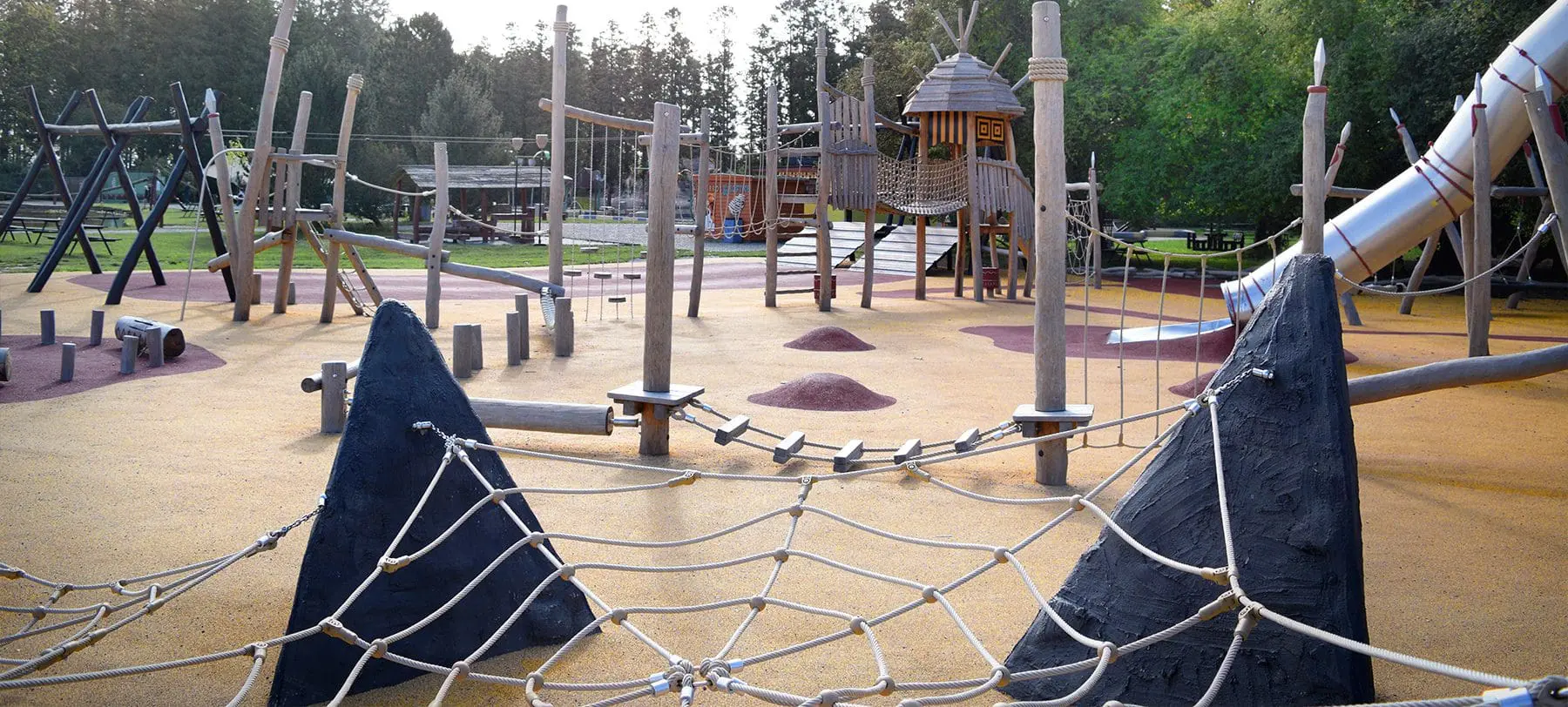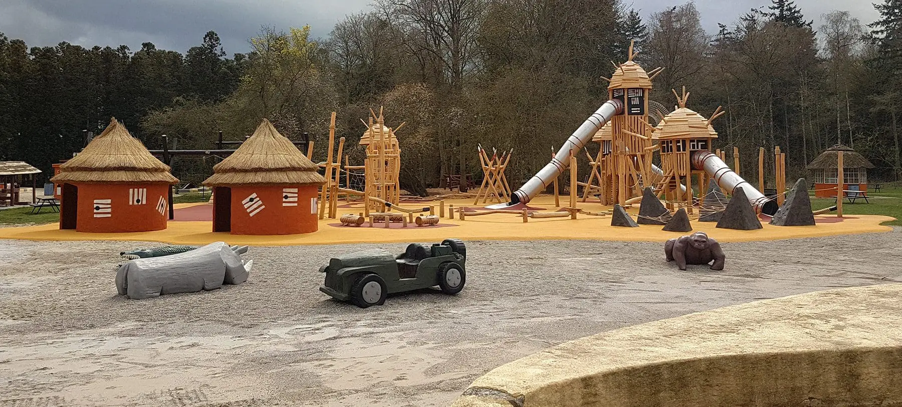 På en blød, varm, rød og gul slette skyder en hel, lille verden op midt i Knuthenborg Safariparks afrikansk inspireret forlystelsesparadis Limpopoland. Områdets unikke temadesign stod derfor i front, da parken besluttede at renovere deres legeplads. Med det in mente tog vi fat i vores fast samarbejdspartner Spielart for at skabe en eksotisk, fantasifuld og alsidig legeplads.