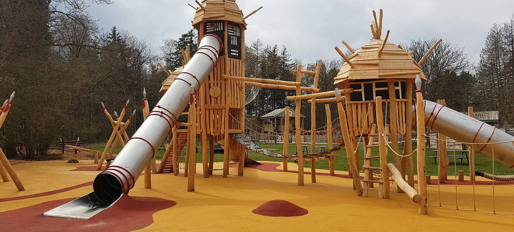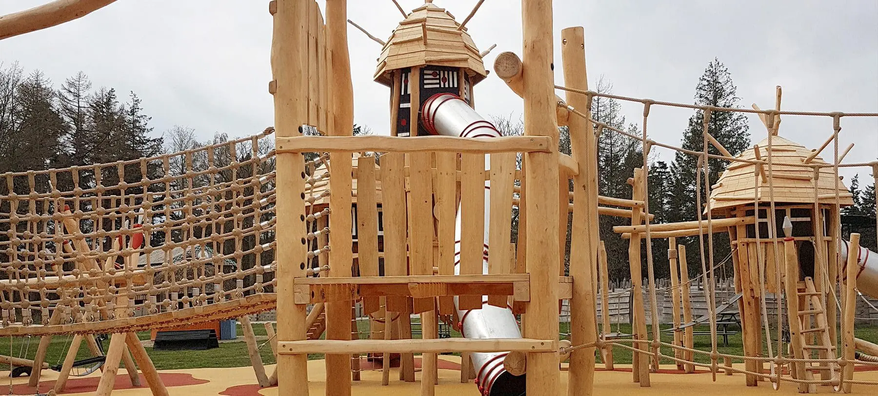 I et forsøg på at få budgettet til at række så langt som muligt, valgte vi at genbruge legepladsens gamle rutsjebane og designe klatretårnet, så den passer til det. På den måde kunne vi i stedet bruge pengene på at skrue op for legeværdien.