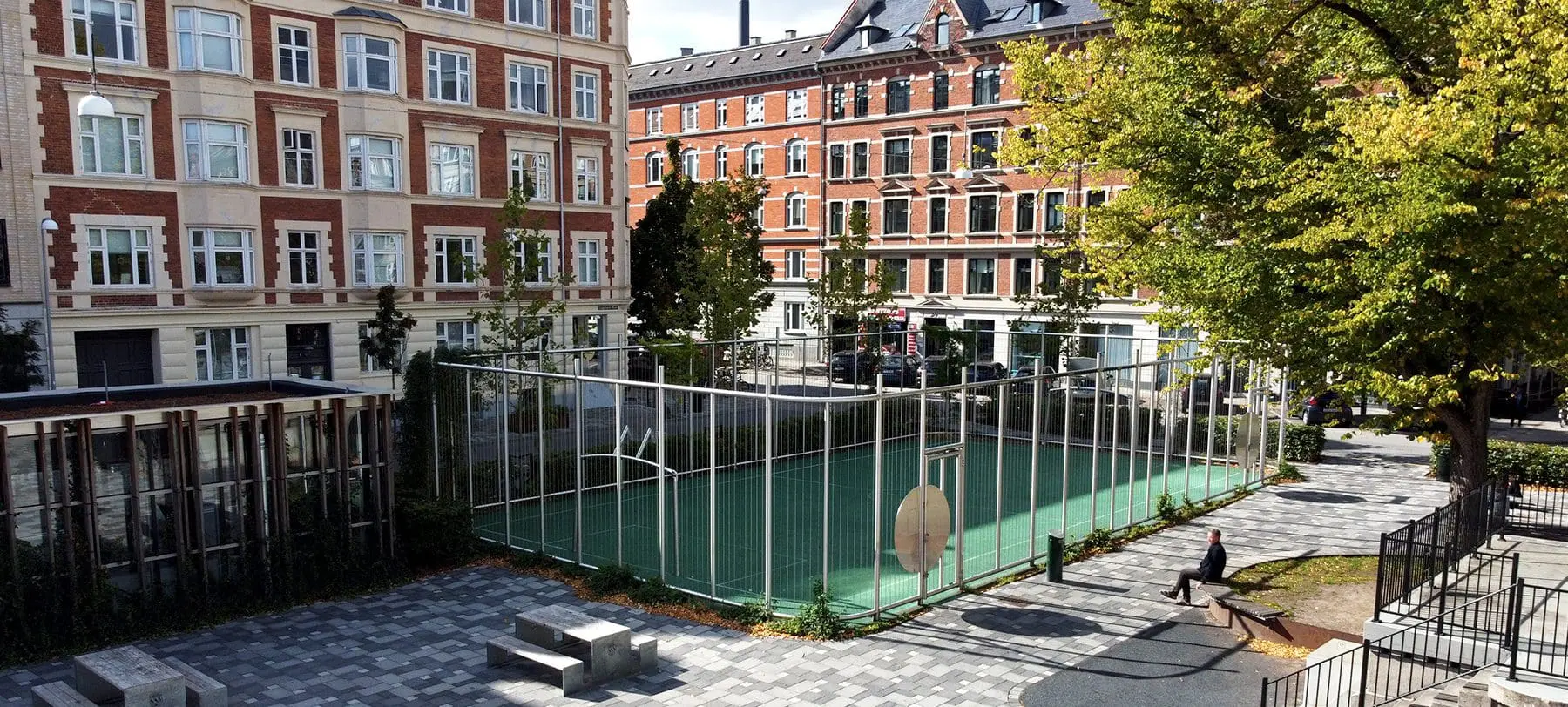 En hjørnesten i det nye design er legeområdets nye Citybox. Citybox er vores visionære boldbur. En komplet støjsvag, hærværkssikker, miljørigtig løsning, der passer lige ind i området uden at stjæle udsyn. Citybox skaber en plads til sport og leg, der ikke forstyrrer omverdenen – hverken med larm, hærværk eller forurening. Derudover har området fået et specialdesignet træningselement, en træningsstation og flere mindre siddemøbler.