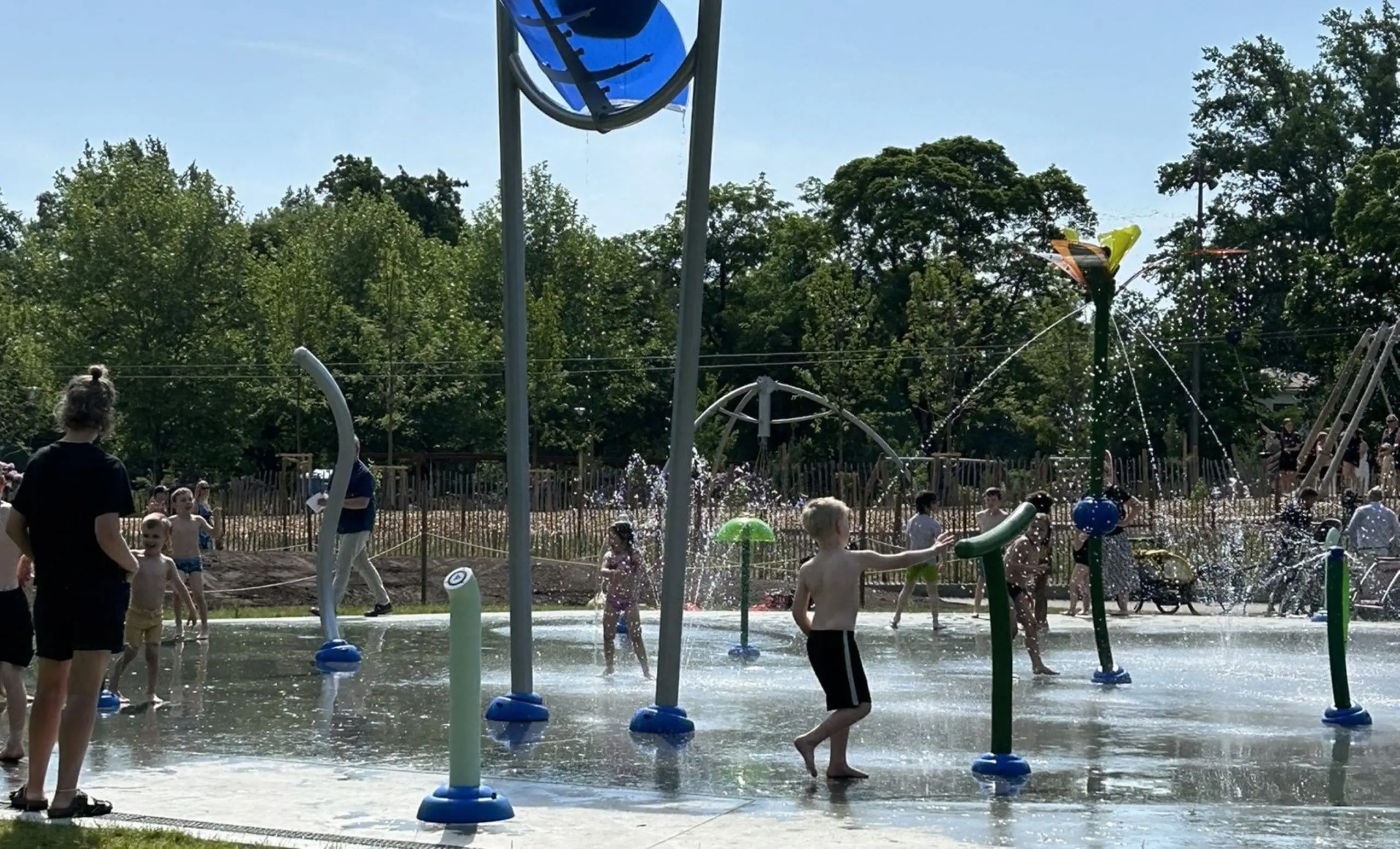 En oanvänd plaskdamm fick nytt liv i stadsparken i Örebro. Med ganska enkla medel förvandlades dammen till en sprudlande vattenlek, lika spännande för barn som för vuxna. Ett knapptryck på en av aktiveringsstolparna och en sekvens med vattensprut sätts igång under ca 2 minuter, vid nästa tryck är det andra redskap som aktiveras. Allt styrs med magnetventiler och en dator som är placerade i ett litet hus ca 35 m från vattenleken.