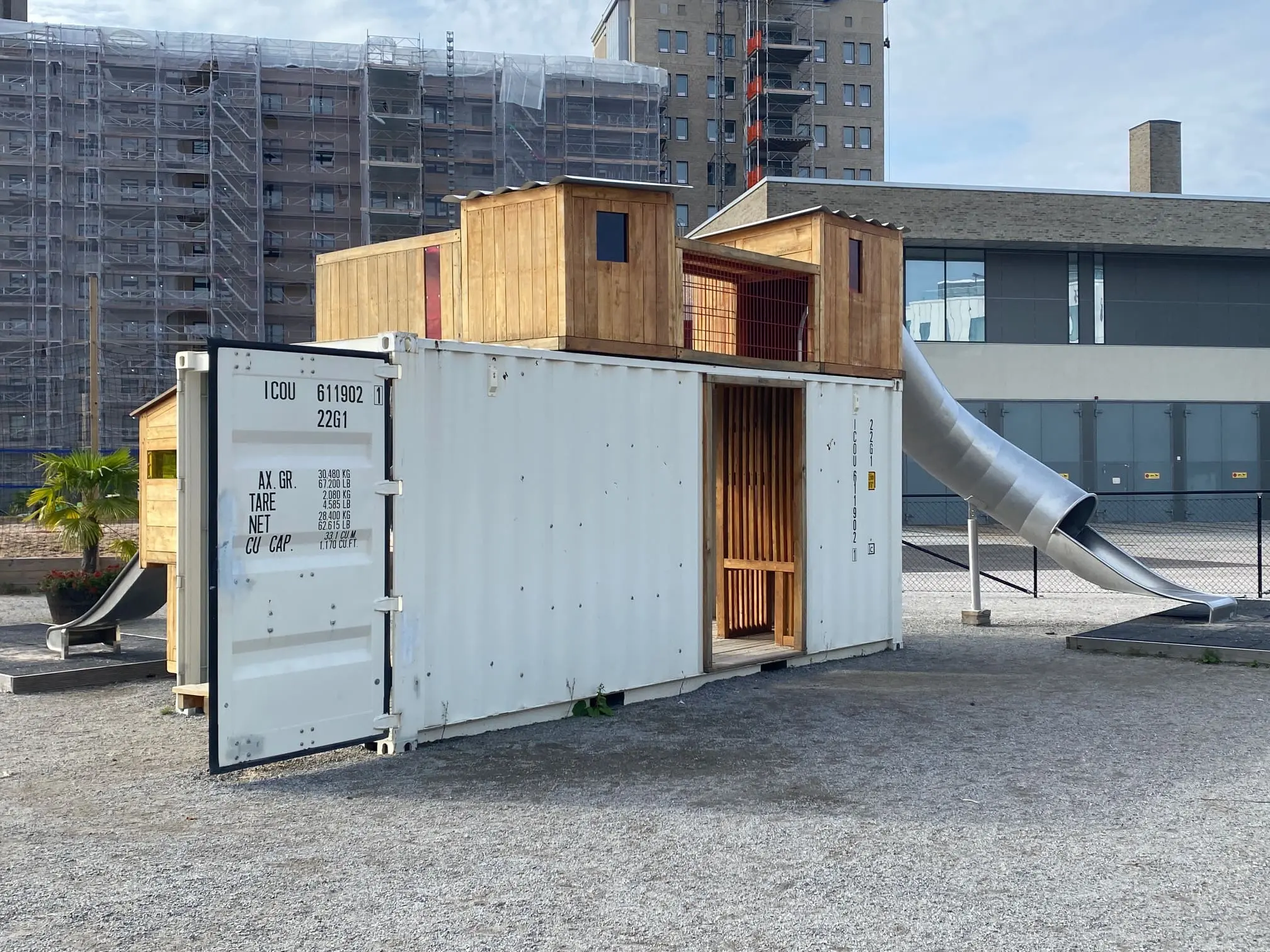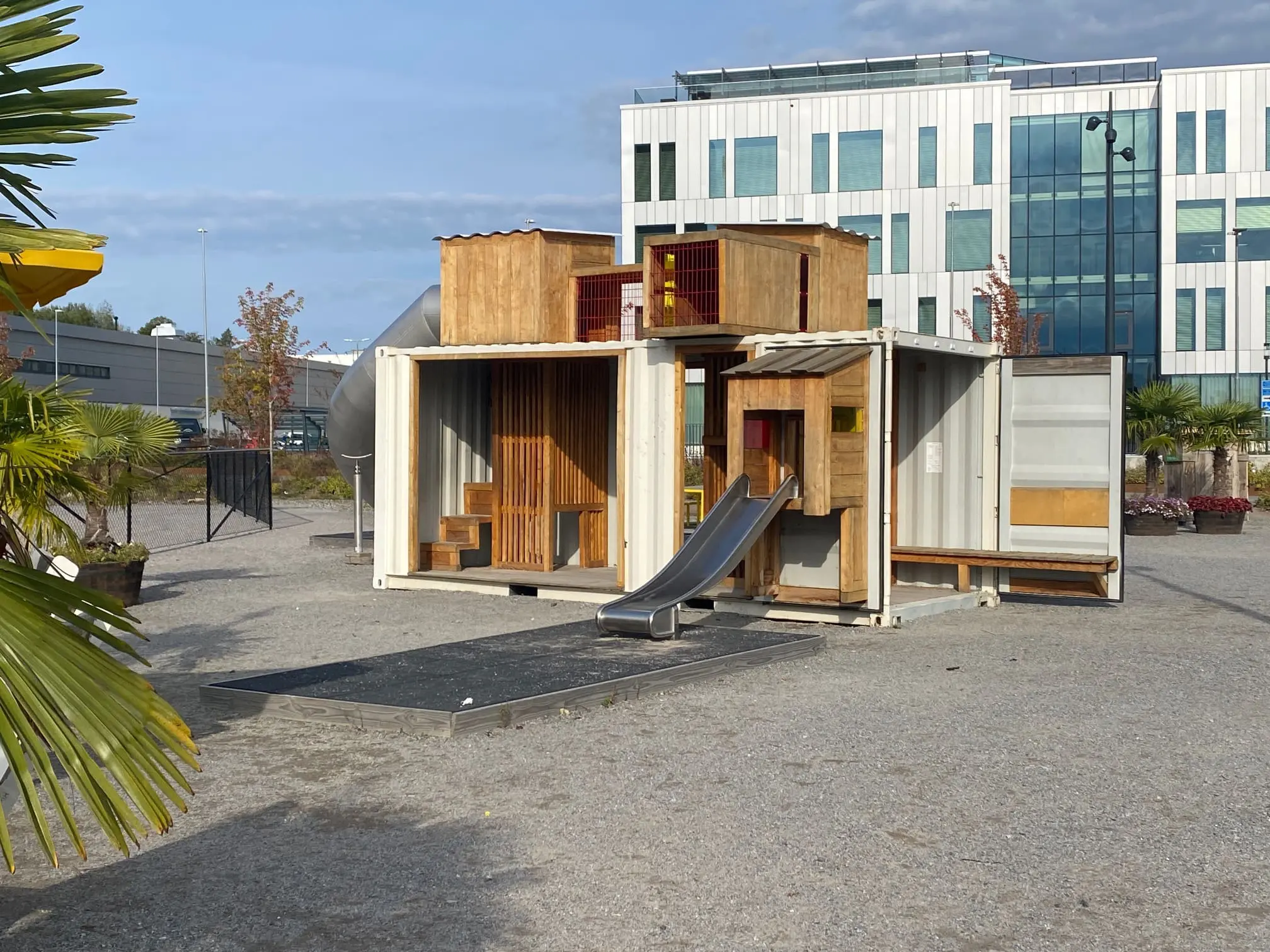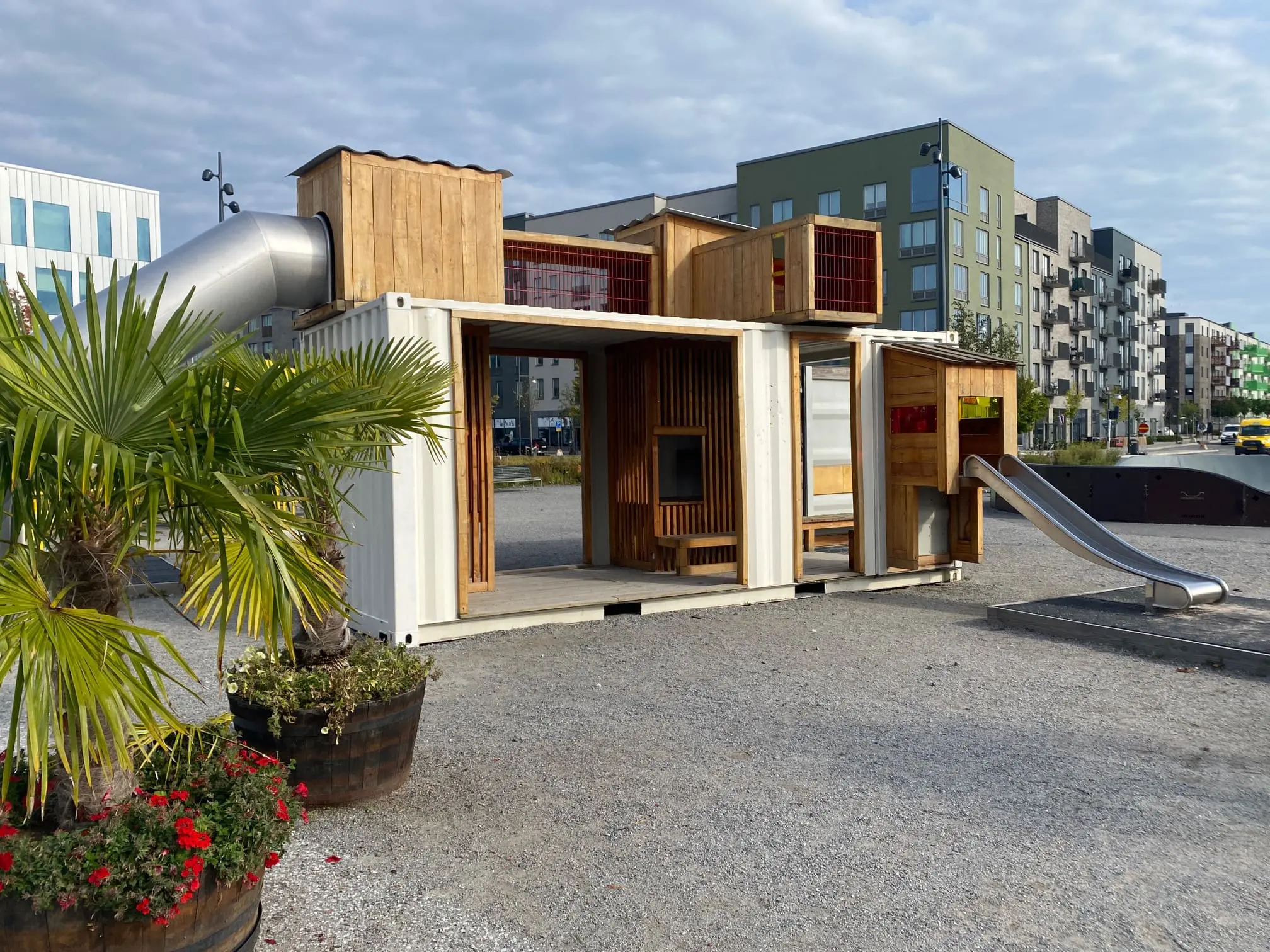 Vid Barkarbystadens Pop Up lekplats hittar du utrymme för spontanlek och plats för att chilla samtidigt.