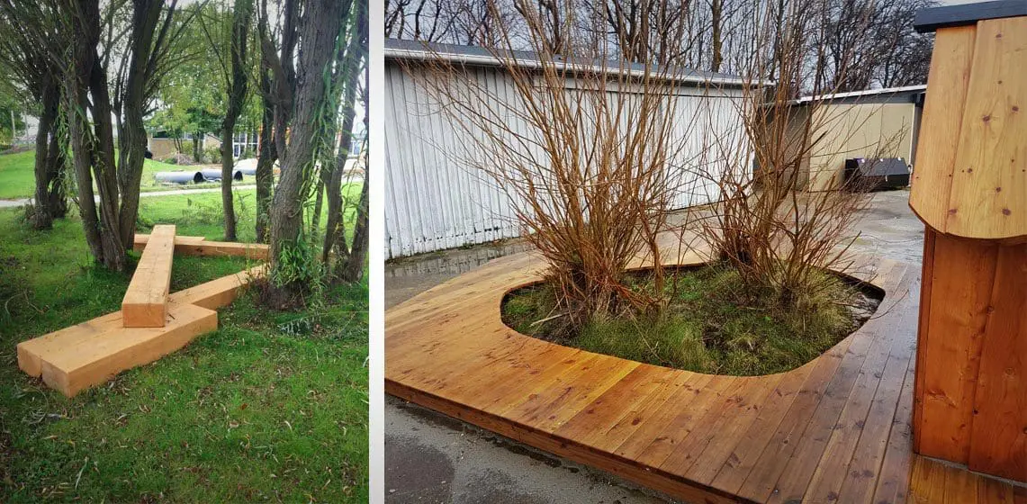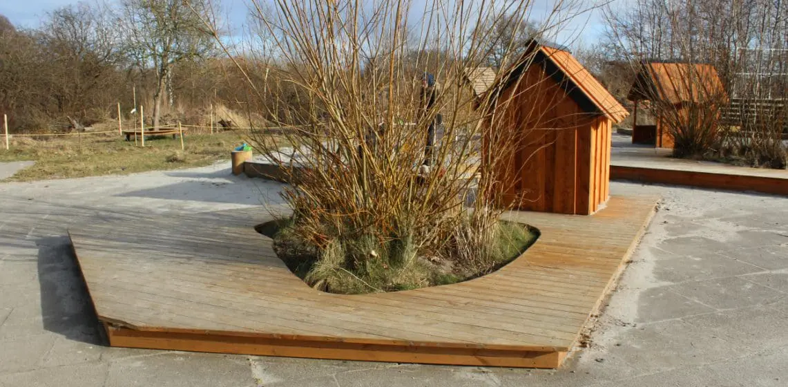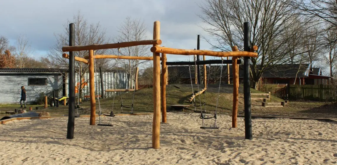 Fritidsdelen har i forvejen nogle fantastiske udearealer med masser af plads og eksisterende beplantning – men alt var udtjent og stedet trængte generelt til at få tilført noget mere legeværdi for den meget brede aldersgruppe, der bruger stedet.