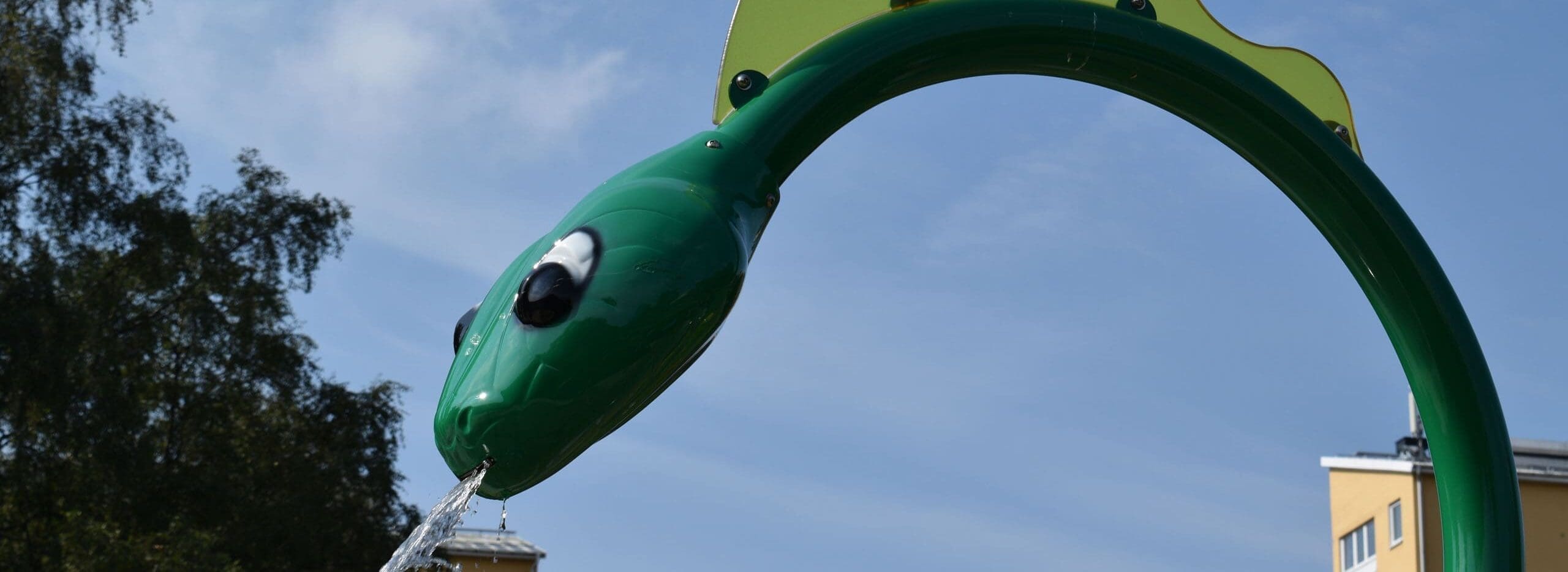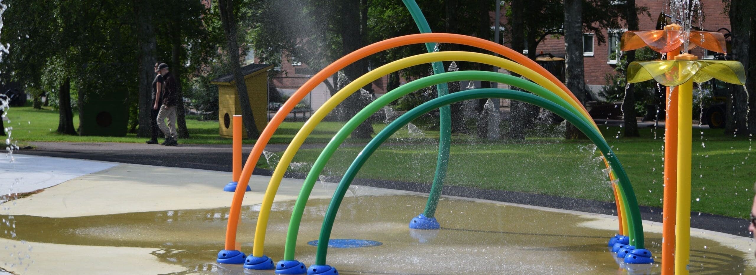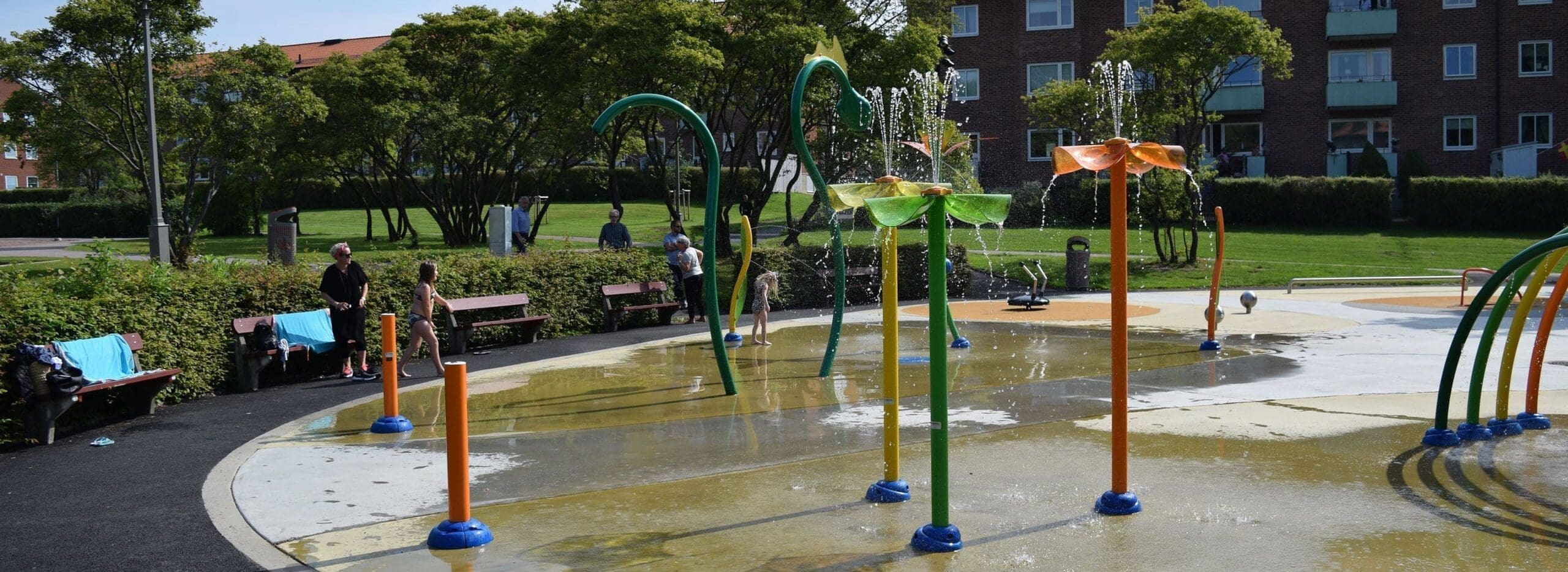 I detta projekt fick vi till uppgift att göra om den gamla plaskdammen i parken till en mer attraktiv plats för barnfamiljerna i området. Idag är detta en plats dit både barn och vuxna kommer för att umgås, leka och svalka av sig på. Här kan man leka med vattenslussarna i Water Journey, vattensprutande drake och mycket annat. Om man inte vill blöta ner sig så finns här även en tillgänglighetsanpassad karusell, balansbom och en snurrande myra att leka på. Vattenparkens redskap kommer från leverantör Vortex i Kanada.